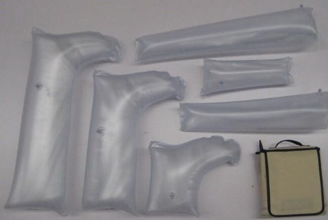 充氣夾板是有PVC材料制成,防火,表面韌性較強(qiáng),不易被損壞,在使用中如果臟了可 放心的放在水中洗滌不要擔(dān)心會(huì)壞掉,充氣夾板在真空的狀態(tài)下可以發(fā)揮像石膏一樣的作用把傷員的骨折或者脫臼的部位個(gè)固定住保持70個(gè)小時(shí)以上,軀體固定器可以按照傷員的各種形態(tài)的變化,也可以與X光、CT、MRI檢查配套。